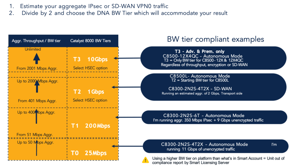 For the Cisco Catalyst 8000 Series, DNA licensing directly determines your available capabilities, bandwidth tier, Smart Account compliance and long-term scalability.