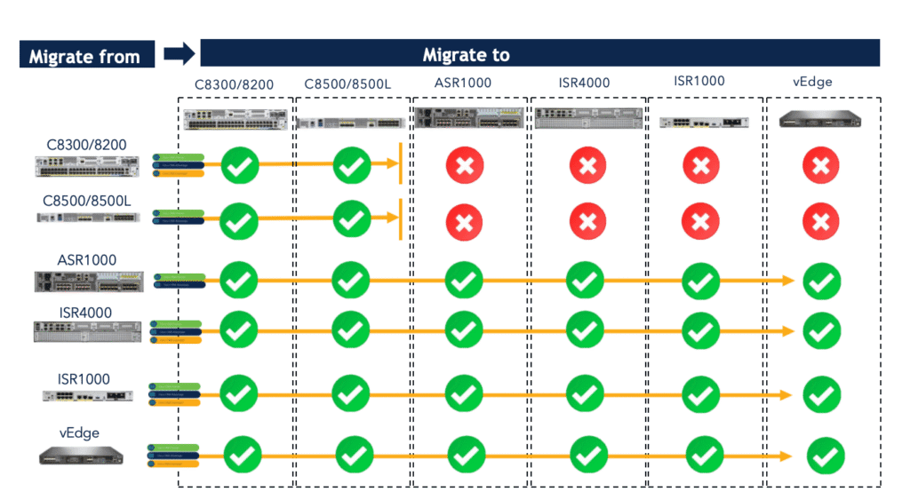 - vEdge → Catalyst 8000 (moving to IOS XE SD-WAN)