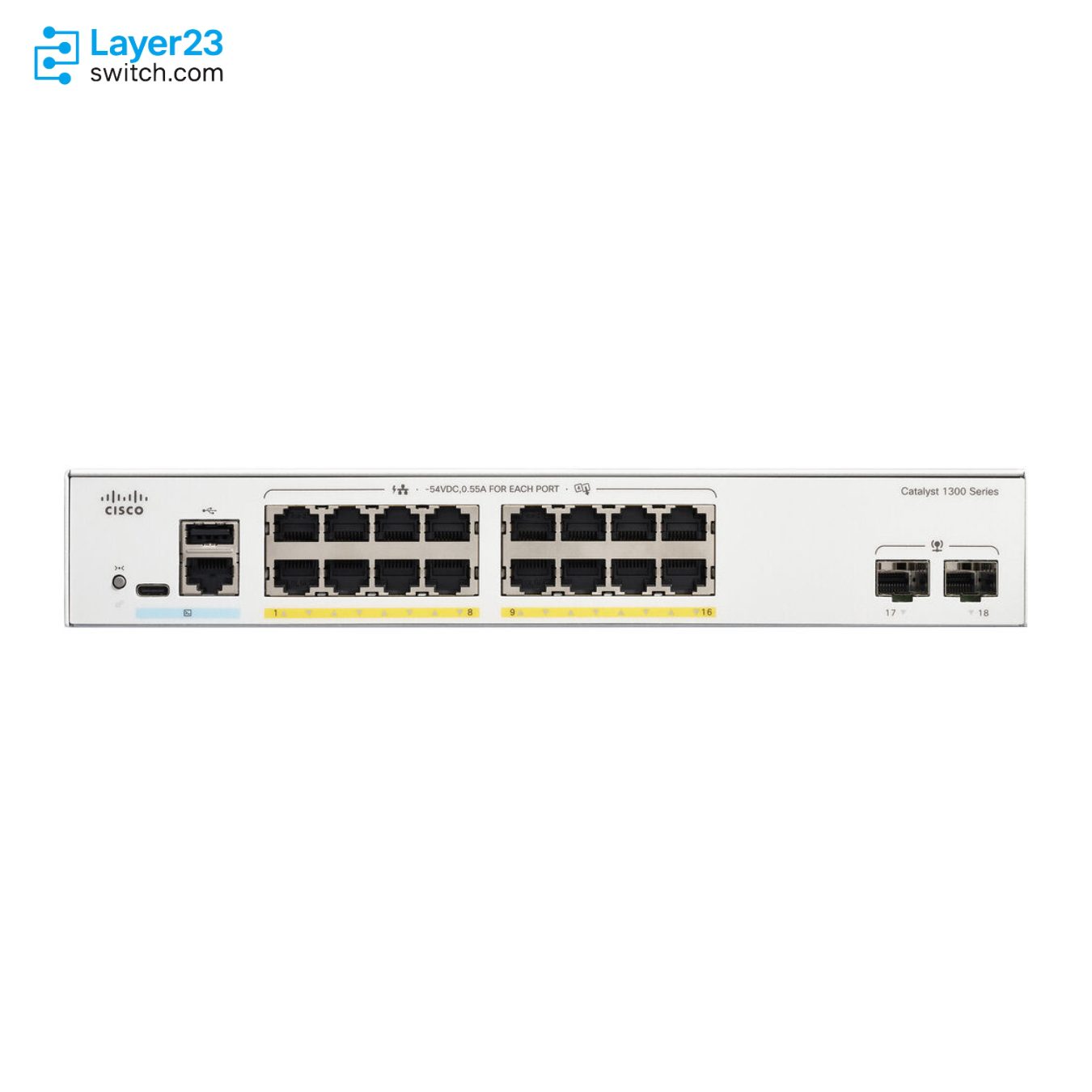 The Cisco Catalyst C1300-16P-2G is a fanless, enterprise-class Layer 3 managed switch, perfect for powering a modern small business or branch office. Featuring 16 PoE+ Gigabit ports and 2 SFP fiber uplinks, this compact model offers a robust 120W PoE power budget—ideal for IP phones, wireless access points, and surveillance cameras. With 36 Gbps switching capacity, advanced security, and full Layer 3 features such as VLANs and static routing, the C1300-16P-2G ensures secure, efficient, and high-speed network connectivity. Easily managed via Web GUI, CLI, Cisco Business Dashboard, or SNMP, it delivers reliable and silent operation for open offices, retail, and educational environments.