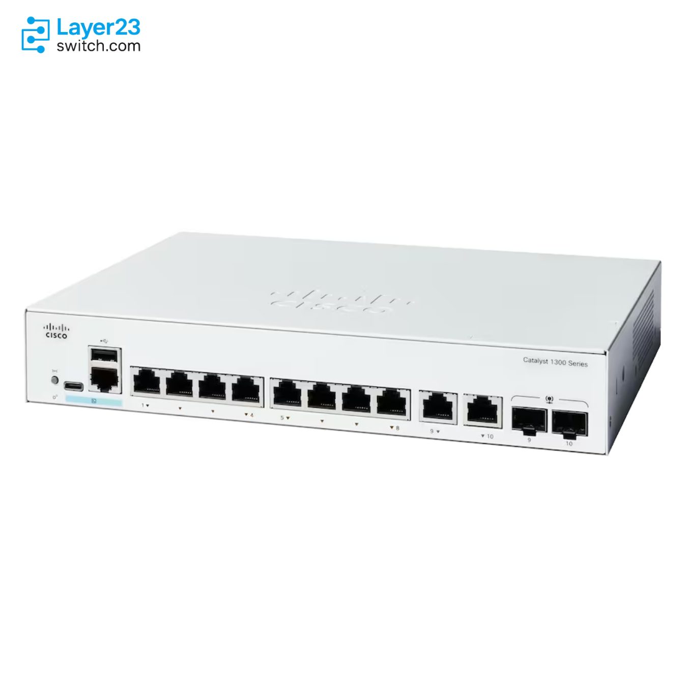 The Cisco Catalyst C1300-8FP-2G is a next-generation Layer 3 managed Gigabit switch designed for small and medium-sized business networks. Featuring 8 PoE+ (Power over Ethernet Plus) Gigabit ports and 2 combo copper/SFP uplink ports, this compact switch delivers up to 120W total PoE budget, ideal for powering IP phones, wireless access points, and security cameras. With a non-blocking 20 Gbps switching capacity and robust hardware security features, the C1300-8FP-2G provides reliable, secure, and high-performance connectivity. As part of the Catalyst 1300 Series, it offers advanced Layer 3 features, comprehensive management options, and energy-efficient operation, making it a perfect solution for branch offices and SMB environments seeking enterprise-class networking at an affordable price point.