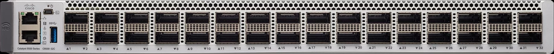 | Use cases | Campus core/distribution; 10/25G fan-out via QSFP28 | Ordering PID | C9500-32C-E |