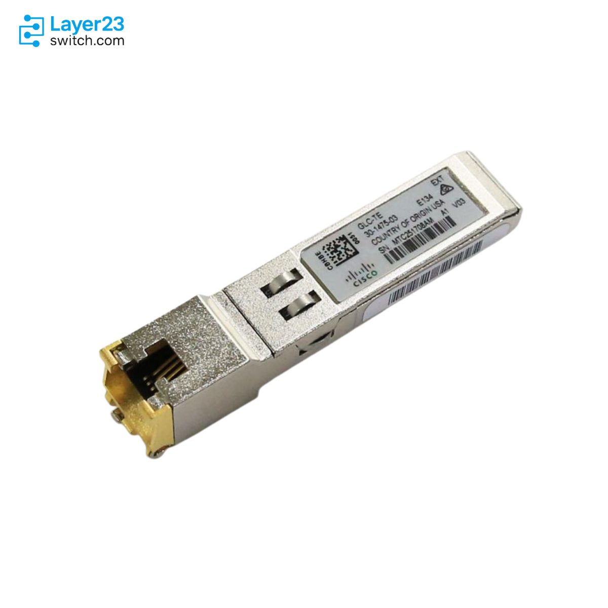 Cisco GLC-TE is a 1000BASE-T copper Small Form-Factor Pluggable (SFP) transceiver designed to provide flexible Gigabit Ethernet connectivity over standard Category 5 unshielded twisted-pair cabling. This hot-swappable RJ-45 SFP supports link lengths up to 100 meters and features full 10/100/1000 auto-negotiation as well as Auto-MDI/MDIX for simple and seamless deployment in any copper networking environment.As an Extended Temperature (EXT) version, GLC-TE is rated for -5°C to 85°C, making it suitable for enterprise wiring closets, campus networks, and even harsh edge or industrial locations where environmental resilience is required. Unlike fiber-based optics, the copper SFP provides a cost-effective option for short-range uplinks, lab environments, or mixed copper-and-fiber infrastructures.