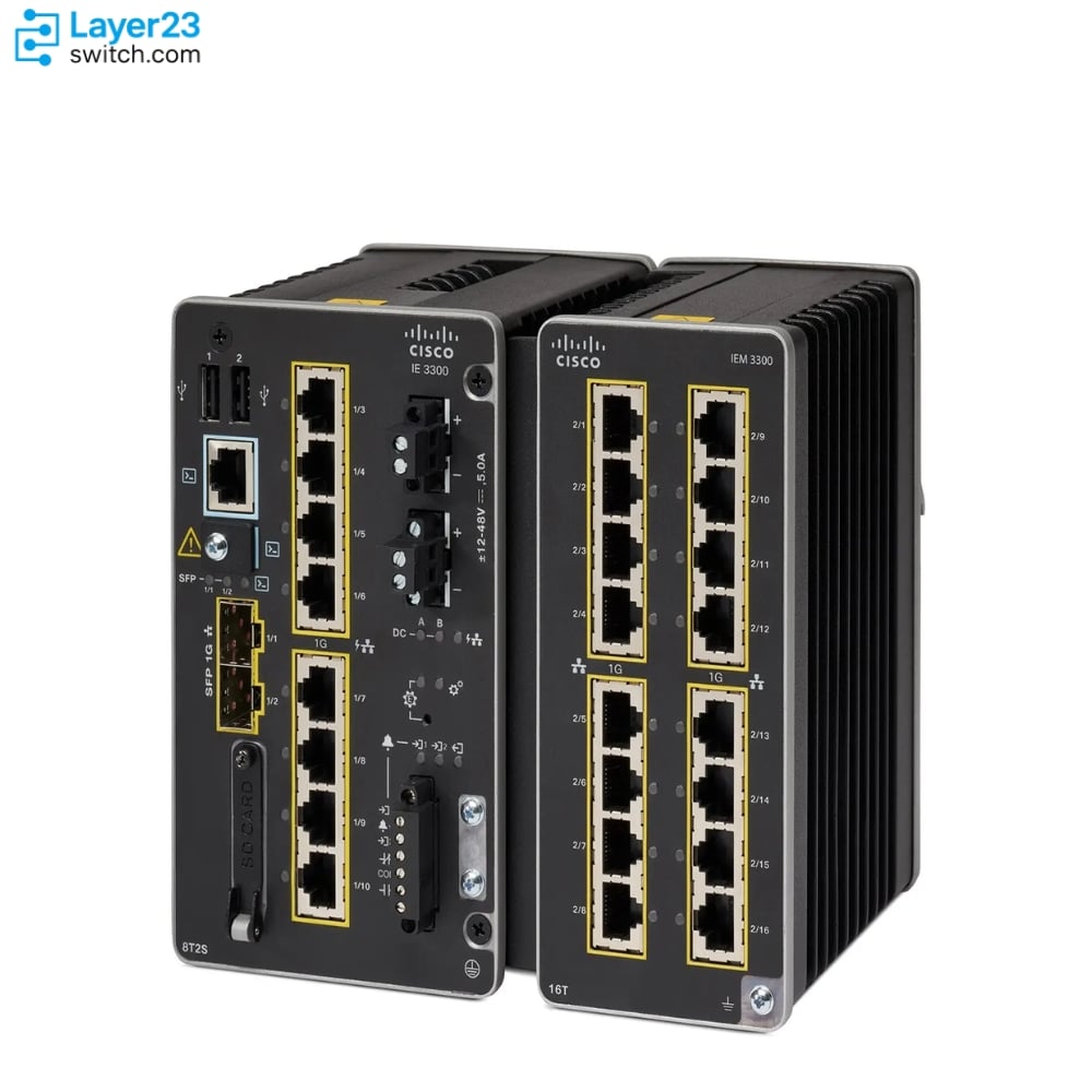 Cisco Catalyst IE-3300-8T2S-A is a rugged, DIN-rail-mountable switch offering eight Gigabit copper ports plus two 1 Gb SFP fiber uplinks. Running the Network Advantage IOS XE image, it delivers full Layer 3 routing (OSPF, BGP, EIGRP, VRF-Lite), hardware-based MACsec-256 encryption, and TrustSec micro-segmentation for zero-trust industrial networks. Deterministic performance is ensured by eight hardware egress queues per port and sub-µs precision with IEEE 1588v2 boundary-clock PTP. Convection-cooled and rated for –40 °C to +75 °C, it withstands shock, vibration and electrical noise. Dual 9.6–60 V DC inputs provide power redundancy, while the SwapDrive SD-card enables zero-touch replacement and rapid recovery. Full Flexible NetFlow and streaming telemetry feed real-time analytics to Cisco Secure Network Analytics or third-party collectors.