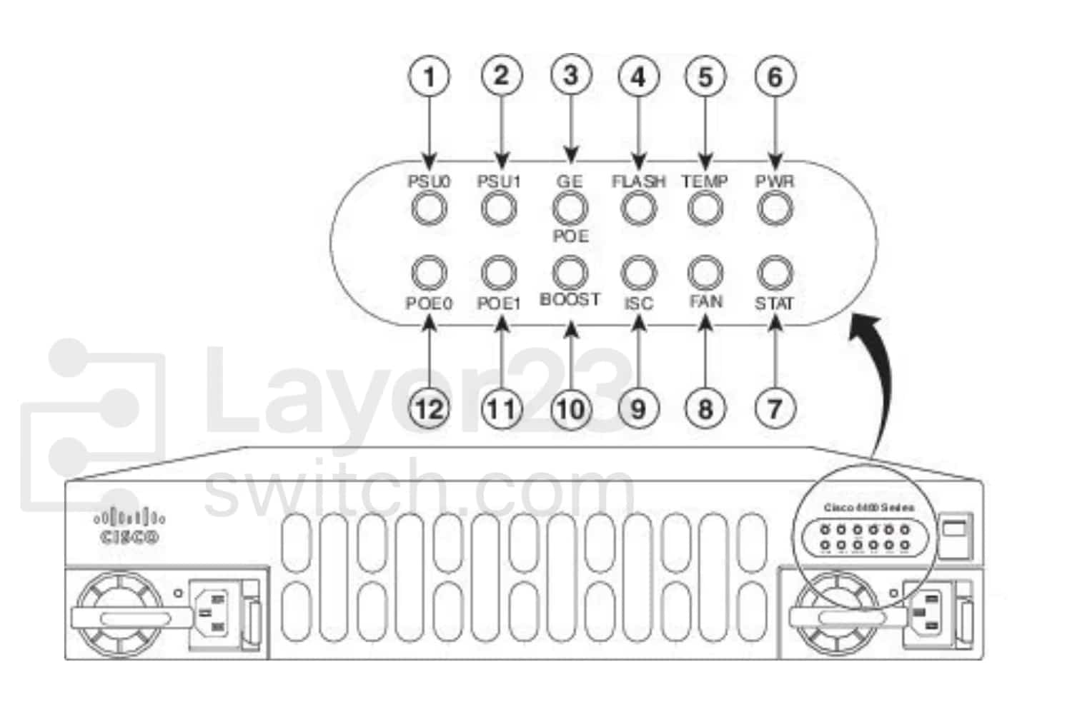 LEDs for the GE 0/0/0 interface (See Table 1-1 for detailed LED information) 4836_fc57c6-5c> |