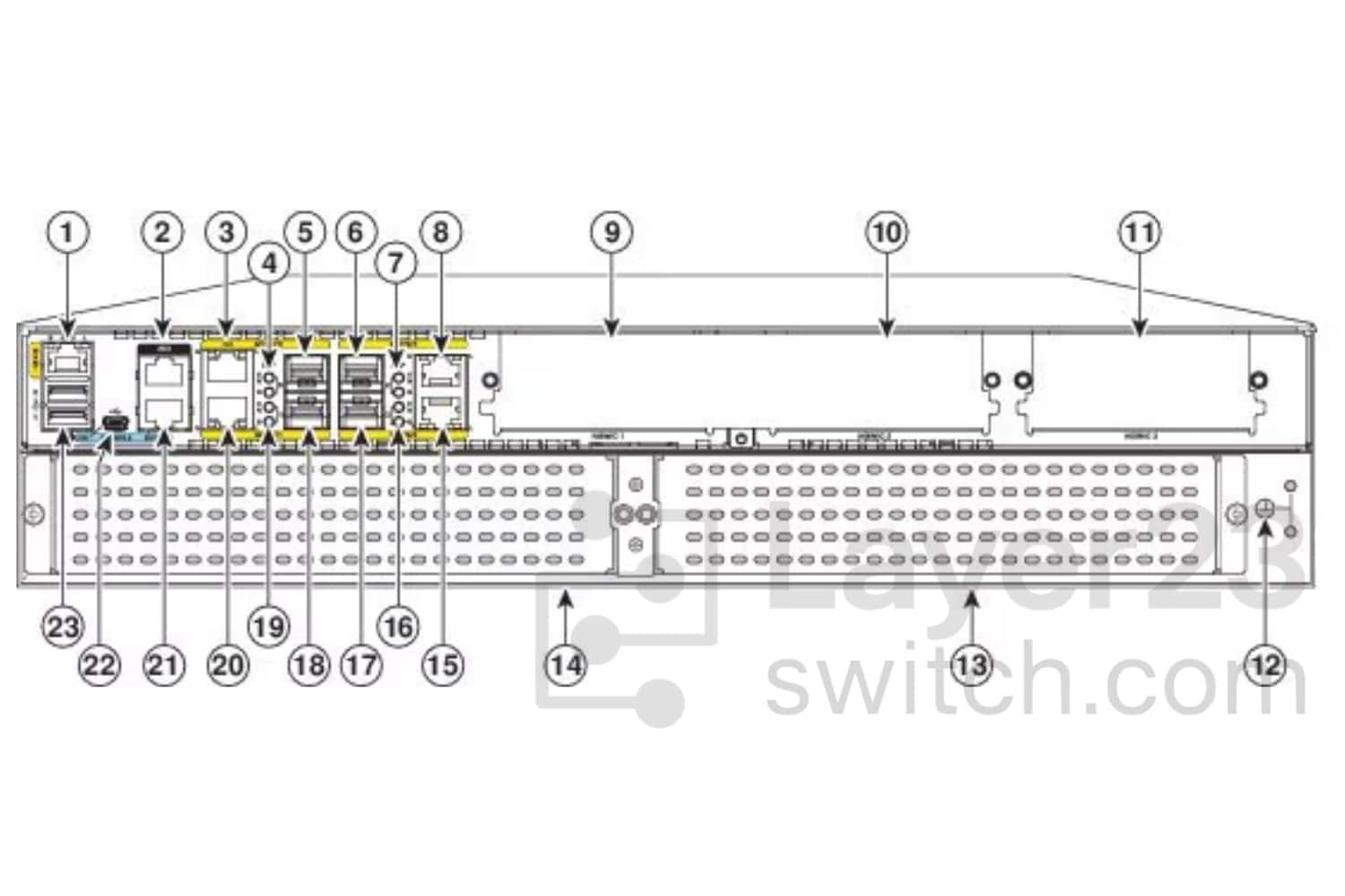 Router fan tray (hidden) behind removable bezel 4836_3c44ef-42> |